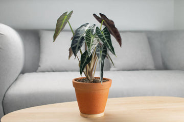 Perfect for small spaces, Alocasia Polly typically grows to a manageable height of 1-2 feet, making it ideal for tabletops, shelves, and windowsills.