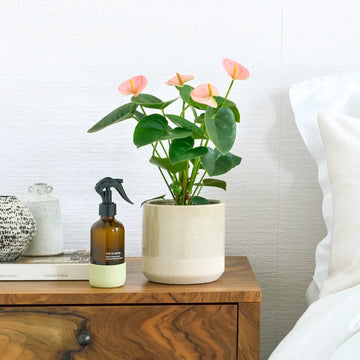 The Anthurium 'Pink' is a delightful plant known for its soft, blush-colored spathes that bring a touch of elegance and charm to any room. Paired with its glossy, deep green leaves, this plant adds a delicate, tropical flair to your indoor space. Thriving in bright, indirect light and preferring high humidity, the Anthurium 'Pink' is easy to care for and perfect for those looking to add a pop of color with minimal effort. With its long-lasting blooms, this beautiful plant is sure to enhance your décor year-round.