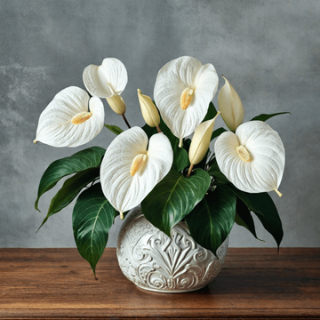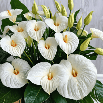 The Anthurium 'White' offers stunning, long-lasting white spathes that bring a touch of modern elegance to any indoor space.