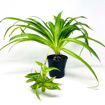 The Spider Plant 'Hawaiian' is a unique and compact variety known for its lush, arching green leaves with creamy white centers. This easy-care plant thrives in low to bright indirect light and is perfect for hanging baskets, tabletops, or shelves. With its vibrant foliage and air-purifying qualities, the Spider Plant 'Hawaiian' adds a touch of tropical charm to any indoor space.